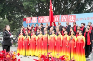 近日,广安华蓥市在华蓥山广场开展以“弘扬宪法精神,建设法治华蓥”为主题的“12·4”国家宪法日法治宣传暨法治文艺节目展演活动,通过宪法宣誓、“中华人民共和国法治宣传教育法”宣讲和法治文艺节目展演等喜闻乐见、寓教于乐的形式,将法律知识送到市民身边,进一步增强市民法治意识,营造尊法、学法、守法、用法的良好社会氛围,迎接第十二个国家宪法日和第八个“宪法宣传周”。图为华蓥市的民间文艺团队在华蓥山广场为市民合唱歌曲“普法路上有彩虹”。(邱海鹰 摄影报道) ……
