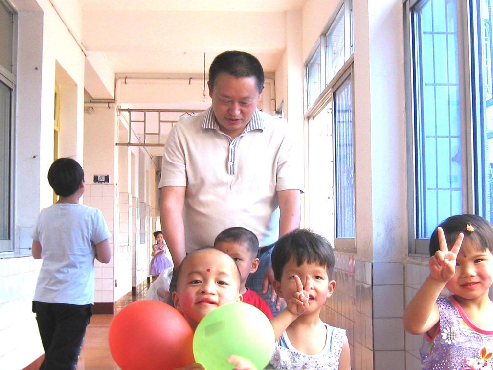 绵阳市救助管理站站长唐德兴与安置在梓潼儿童福利院的孩子们在一起
