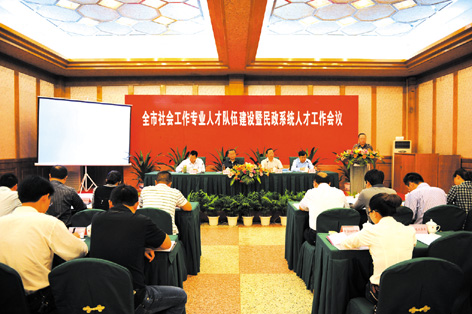 本报讯 近日,泸州市召开社会工作专业人才队伍建设暨民政系统人才工作会议。会议传达学习了全省社会工作专业人才队伍建设工作会议精神,研究部署了2012年全市社工专业人才队伍建设工作。泸州市副市长李晓宇出席会议并讲话,市政府副秘书长康江主持会议。