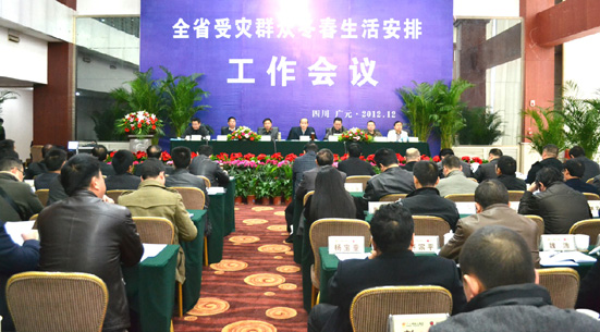 本报讯 近日,全省受灾群众今冬明春生活工作会在广元市召开。会议传达了全国受灾群众冬春生活安排工作视频会议精神,安排部署了我省2012—2013年度受灾群众冬春生活救助工作。省民政厅副厅长张力,广元副市长任华兮、广元民政局长田刚富等出席会议。会议由省民政厅救灾处处长王绪恩主持。各市(地、州)分管领导以及救济救灾科长和扩权强县民政局长参加了会议。
