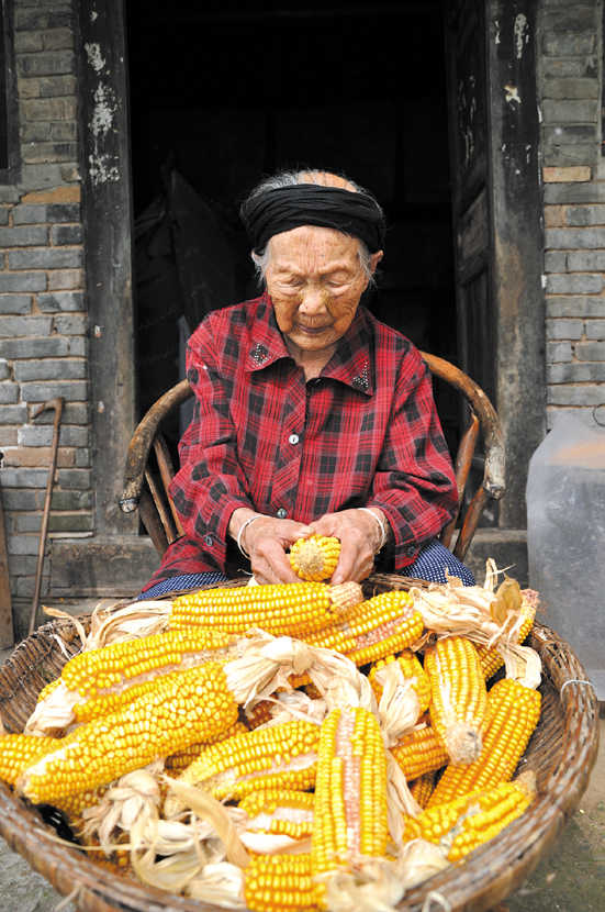 遂宁市射洪县东岳乡青罐村,一个山青水秀的沟口上边,有一个普通的农家小院。穿投架子青瓦房,堂屋门前的台阶上,头上包裹着青布帕子的老人坐在一把陈旧的木椅上,正在剥苞谷。听到记者来采访,老人急忙站起身要去给我们拿板凳。80多岁的大儿媳任朝红贴着老人的耳朵大声地告诉她:“妈,不用你去搬凳子了!”老人嘀咕:“这也不用,那也不用,我都成没用的人了,活起还有啥意思哦!”