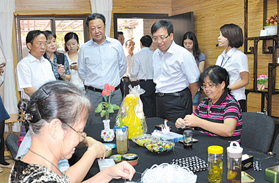 曲木史哈(左二)一行观看老年朋友进行手工制作