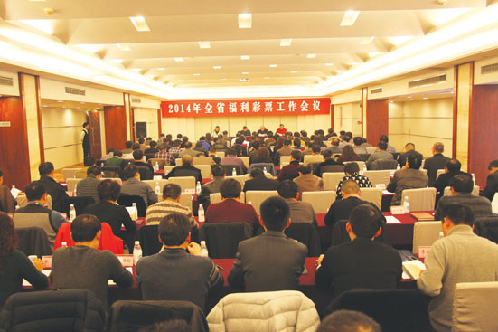 江涛汇报2013年度全省福利彩票工作情况。2013年,我省福彩全年销量为67.83亿元,净增8.32亿元,同比增长14%;筹集公益金首次突破20亿元,达到20.26亿元,增幅为10.29%;市场份额达到65%,相较于2012年增加了4个百分点。2014年,面临的形势更加复杂,调整利益格局更加艰难,江涛说,必须准确把握市场的规律和特点,提升驾驭市场的能力,确保各项任务顺利完成。要处理好我省福彩系统顶层设计与基层探索的关系,做到自上而下与自下而上相结合。2014年我省福彩重点工作主要分为六大板块,采用项目制管理方法,成立六个项目组,实行全过程集成管理,集思广益,使各项工作稳步推进。