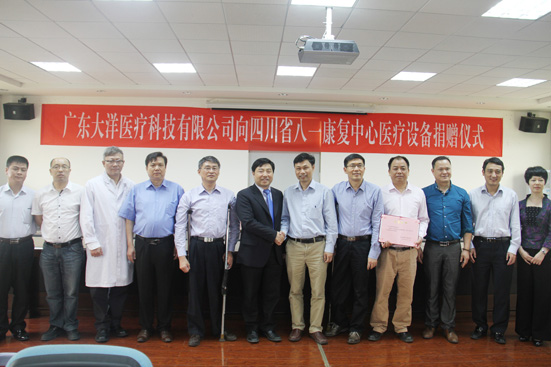捐赠仪式上,四川省八一康复中心邵明院长代表中心接受了捐赠;四川省残疾人福利基金会丁二中理事长向广东大洋医疗科技有限公司颁发了爱心企业《荣誉证书》;四川省残疾人联合会马骏副理事长代表省残联向广东大洋医疗科技有限公司表示了感谢。