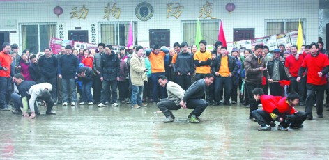 富和乡“农民春晚”中农民正在进行蹲跳比赛