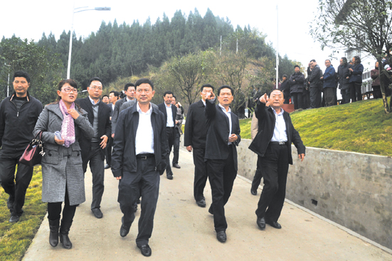 南充市委书记刘宏建(前排左二)视察南部县新农村建设
