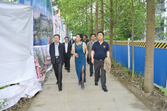 省政府副秘书长陈越良(左一)参观崇州市桤泉镇天府怡园