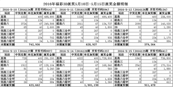 派奖活动刚开始的仅仅6天时间(5月10日-5月15日),四川彩民一共擒获3D奖金1793.6976万元,返奖率达到惊人的81.78%,若对比派奖前福彩3D游戏的52%返奖率,四川彩民在6天时间内就多中了498.7565万元!简直是大福利啊!