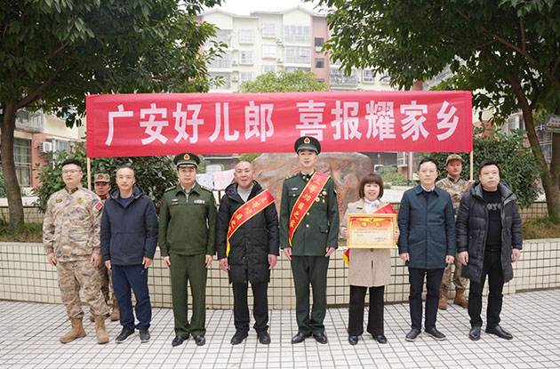 近日,武胜县烈面镇一小区敲锣打鼓,热闹非凡。县人民武装部、县退役军人事务局组建送喜报专班,带着鲜花、立功喜报,专程前往武胜籍现役军人冉宜明家中,将三等功喜报送到其家属手中,向为国家培育优秀军人的家庭致以崇高敬意和热烈祝贺,把党和政府的关怀与尊崇精准送到军属心间。