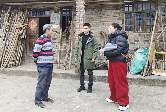 了解退役军人陈良江(左一)家庭情况