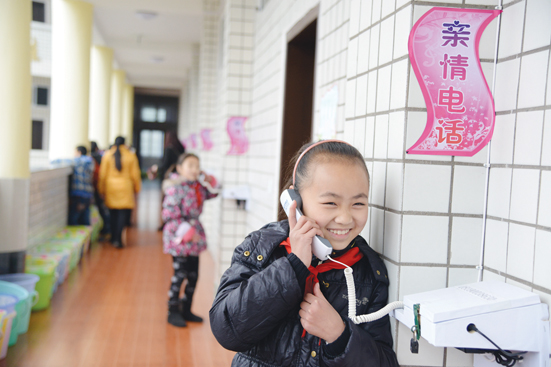 “妈妈,我半期考试语文96分,数学考了100分,请您放心,我会努力学习,您在外也要注意安全!”近日,叙永县摩尼镇新苗实验学校的留守儿童利用亲情电话与在上海打工的母亲聊天。今年以来,新苗实验学校投资11万元在校园的寝室、教室外安装亲情电话39部,亲情视频电脑24台,搭建起该校1047名留守儿童和在外务工父母的“连心桥”。(杨涛 蒲永吉)