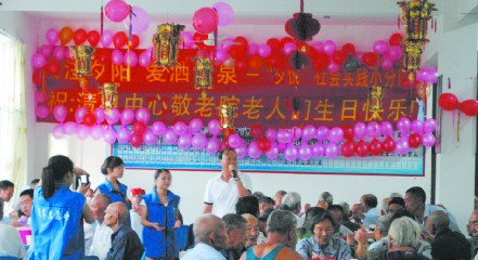 7月29日,青白江区清泉敬老院中心300余名老人齐聚一堂,为敬老院内第二季度生日的62名老人过集体生日。青白江区民政局、区统筹城乡敬老养老管理服务中心、清泉镇党委相关负责人等也齐聚敬老院为老人过生,并祝福老人们生日快乐、健康长寿。(熊廷碧)