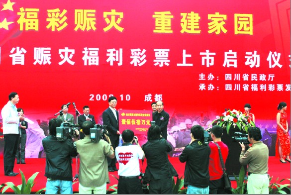 2008年时任民政部部长李学举为四川省福彩中心颁发“抗震救灾突出贡献奖”。