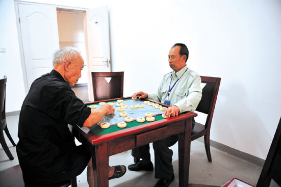 大邑休养院的老人们在博弈象棋