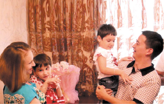 ——俄罗斯双胞胎脑瘫患儿家长向省残联敬献锦旗