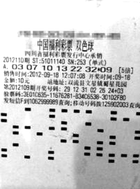 2012110期中出3018万元大奖的彩票