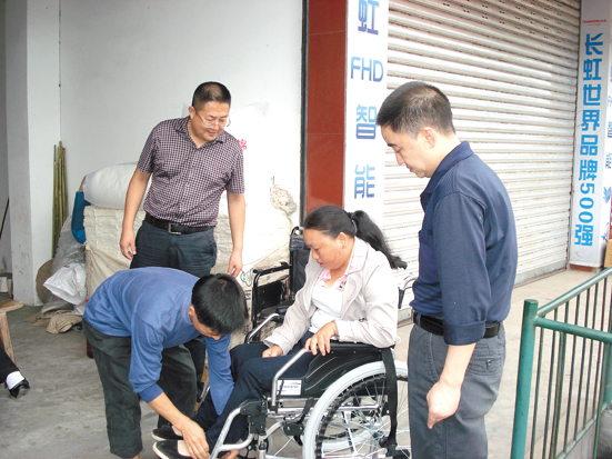 本报讯 在中秋、国庆来临之际,犍为县领导程青带领该县残联县残联理事长吴永利、副理事长陈治平、大兴乡政府副乡长王顺刚等看望慰问了该县重度肢体残疾人唐学英。慰问组一行为唐学英送去了一台新轮椅、现金1000元及过节食品等,程青关切地与唐学英及丈夫龙刚拉家常,针对夫妇俩提出的困难和要求给予逐一解答,唐学英非常感谢县政府各相关单位的关心,表示对今后的生活更加有信心。(本报记者)