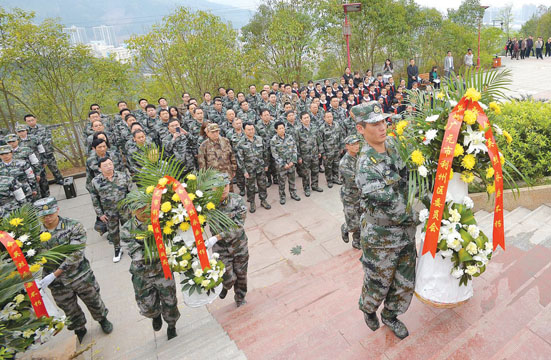 巴中军分区组织机关全体官兵、巴州区人武部全体干部及职工和民兵应急分队人员,到川陕苏区将帅碑林祭奠革命先烈。大家怀着崇敬的心情,列队在纪念碑前向先烈默哀、敬献花篮,缅怀革命先烈的丰功伟绩,为实现“中国梦、强军梦”贡献力量。(吴坤峰 熊昌洪)