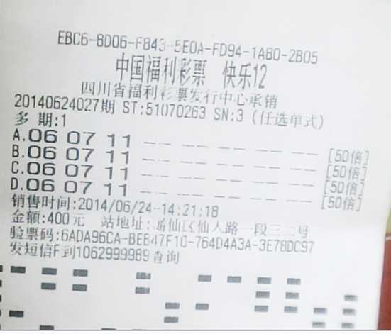 快乐12游戏20140624027期一彩民倍投任3斩获5000元大奖。获悉,6月24日,王先生和妻子打点完店铺生意准备回家,路过51070263号站时被站点门口的绵阳“快乐12”的活动海报吸引。妻子随口对王先生说到:“你看,福彩又是送大米、送电饭煲、微波炉、电视机什么的,你天天都在打怎么没见你抱回家过。”“哎呀,这不是别人福彩刚搞的活动嘛,走!带你进去打几注,今天给你抱台微波炉回去。”于是王先生带着老婆进入投注站,并根据站点推荐的号码打了200倍“任选三”。让人惊喜的是,好运如约而至,随口给老婆的一个承诺没想到真的让他中得了5000元大奖,还赢得一台美的微波炉,真是好运当头啊!