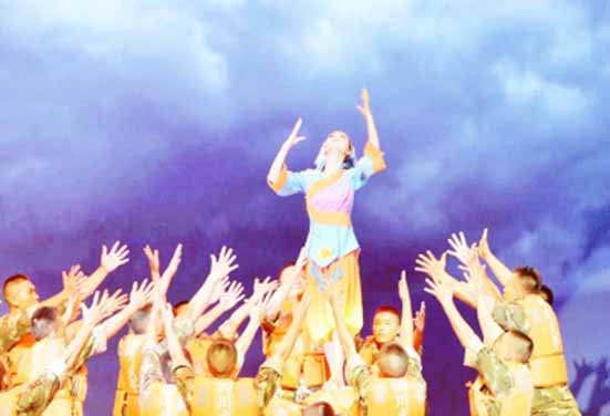 烽火战场号角响,战地黄花分外香。长征、战场抗敌、横渡长江,舞蹈《烽火岁月》中的一幕幕场景展示了人民子弟兵用热血和汗水为新中国的成立披肝沥胆的军魂。表演唱《部队那些事》向观众展示了驻广官兵部队生活的苦与乐。《军队与枪》中,官兵与他亲密的战友——“枪”,用舞蹈生动展示了人民军队“听党指挥、能打胜仗、作风优良”的光荣传统和神圣使命。