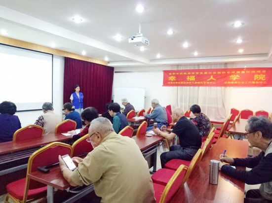 成都市军休中心坚持“需求为本”的原则,以“求知、分享、互助”为理念成立了“幸福人学院”。“幸福人学院”根据每个干休所不同的需求分别开展了微信、拼音、智能手机、诗歌朗诵等日常学习课程和入门学习班、音乐相册制作、高级提高班等专门学习课程,开学时举办开学典礼,学期末举行毕业典礼,为出勤率达标的军休干部颁发结业证书,表彰优秀学员。
