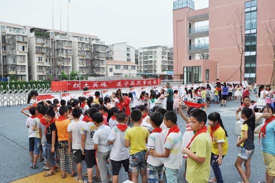 为了弘扬烈士精神、培养爱国主义情怀、宣传社会主义核心价值观、激发实现中华民族伟大复兴的强大精神力量。在2017年烈士纪念日即将来临之际,遂宁烈士陵园从《烈士英名录》中选取了132位英烈的光辉事迹,制作了“红土英魂——遂宁英烈事迹展”。考虑到乡镇学校极少走进烈士陵园参观,为了让乡村的孩子同样能有机会学习先烈的光辉事迹,从9月13日到18日,遂宁烈士陵园先后将“事迹展”送进了遂宁市金鱼实验学校,船山区复桥镇小学、仁里镇常林小学、河沙镇小学、新桥镇新太小学,经开区凤台小学,蓬溪县红江镇学校、红江镇第二小学等八所学校。此次图片展活动得到了各个学校的大力支持,校方对烈士陵园将“红色文化”送进校园的举措表示感谢,特别是在烈士纪念日到来前夕,为孩子们带来了一次别开生面的爱国主义教育。
