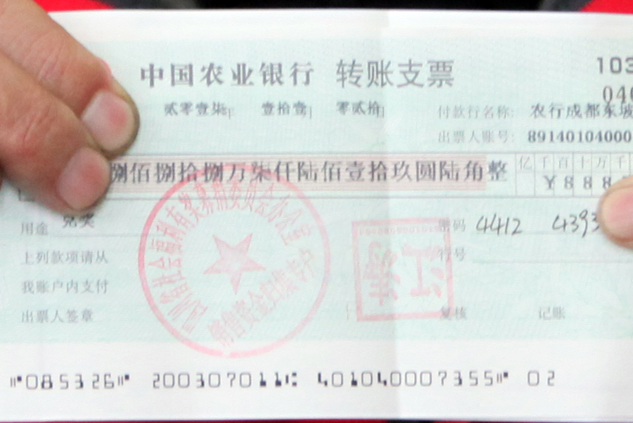 兑奖支票