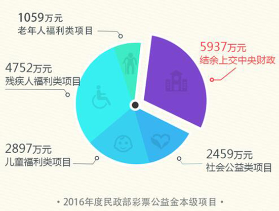 2017年6月,民政部发布2016年度本级彩票公益金使用情况,除公布了公益金使用项目外,还对资助人数、物品个数以及援建场地面积等具体明细进行了说明,将福彩公益金的去向条理清晰地展现在公众面前。