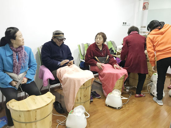 尽管下着蒙蒙细雨,前来体验的老人络绎不绝