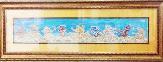 《盛世中华 龙腾九州》这部刮刮乐手工艺作品正是如此:“九龙”威严尊贵,升龙刚猛而充满力量,降龙则温文尔雅。龙作为中华民族的图腾,有消灾弥祸、镇宅、平安、吉祥,财运等含义;龙腾九州,寓意中国福彩事业群贤共济,象征着圆满如意、蒸蒸日上的盛世景象。