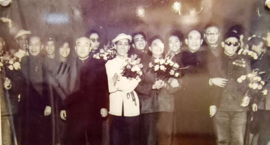 一九五八年六月一日晚,四川省革命残废军人教养院课余演出队在首都政协礼堂汇报演出,周恩来总理、朱德委员长、副总理兼外交部长陈毅元帅、内务部长谢觉哉、徐特立、康克清同志和首都各界群众观看了演出。演出结束后,周总理、陈毅、谢老、徐老、康克清同志走上舞台,和演出队员一一握手。周总理仔细询问了每一个同志的伤势,并对他们说:“你们是人民的战士、人民的艺术家,应该受到党的爱护和群众的尊敬。”接见完毕,周总理等领导人在舞台上与全体演出队员合影留念。