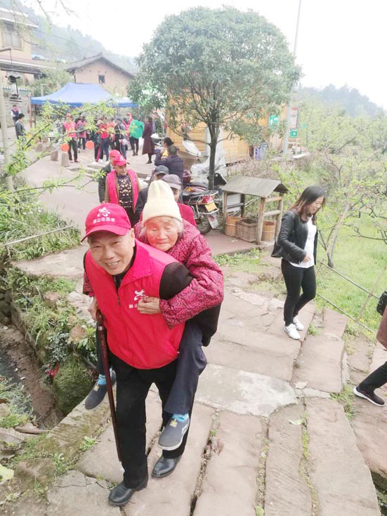丹棱镇桂花村作平文化大院志愿者陪老人幸福古村游