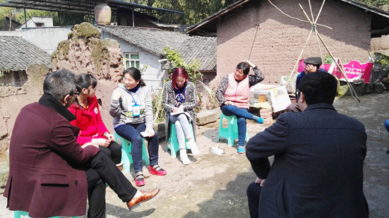兰莉(左三)与同事入户探访困境未成年人