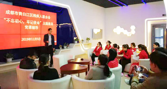 李二尧围绕“铭记历史,不忘初心使命;认清使命,强化履职尽责;坚守初心,做一名合格的残疾人工作者”三个部分展开党课辅导,并收集了现场人员的意见建议。