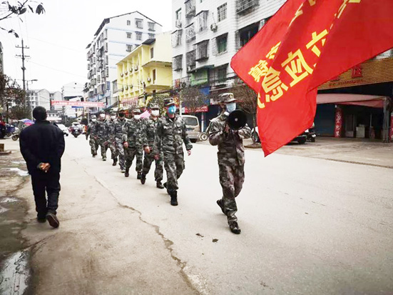 10支队伍分片区,实行“包干制”,在城区农贸市场、交通要道、广场、各种服务网点等人流量大的部位开展地毯式巡逻劝散。他们不分白天黑夜,从早上8点到晚上10点,他们没有周末,放弃元宵节与家人的团聚。他们巡逻茶楼、网吧、餐馆、酒店、商店、小区,用双脚一遍遍地走遍城区的大街小巷。在众多退役军人志愿者的努力下,不仅劝散了聚集的群众、劝离了不戴口罩的人员、劝导关闭了非涉及居民生活必须的公共商铺,志愿者们还自掏腰包救助了离家出走的孩子、协助挡获“三无口罩”,甚至为没有口罩的群众捐赠了自己口罩。在这场战“疫”行动中,广大退役军人志愿者不顾自己安危,只为保全市人民的生命健康,用实际行动展现了退役军人的责任和担当,体现了退伍不褪色的英雄本色。