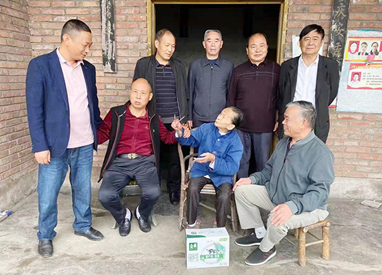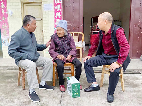 罗国伦(右一)慰问九里镇高龄老人