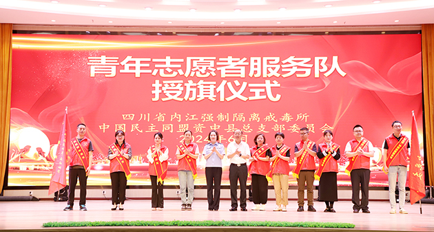 6月,“端午粽飘香 帮教传温情”活动温馨来袭。省内江强戒所副所长陈麒旭与民盟资中县总支主委张文彬为青年志愿者服务队庄重授旗,10名志愿者队员被授予了象征荣誉与奉献的绶带。“我们将以此为动力,继续发扬‘黄丝带’精神,为戒毒人员送去关爱与温暖。”志愿者代表激情满怀地说到。