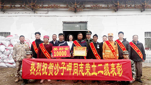 为沙子呷家庭送喜报现场