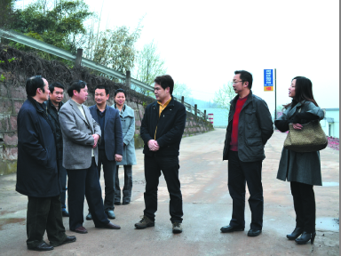 3月23日,省民政厅领导在雅安市民政局局长周全华(左五)和雨城区区委书记王东林(右三)等陪同下,检查雅安市清明祭祀事宜,并安排部署工作。