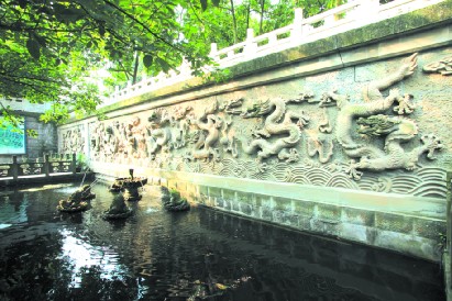 石刻作为南寿山墓园的重要主题,承载了厚重的文化底蕴。图为气势刚健的七龙壁石刻。