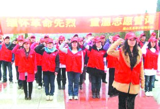 本报讯 在清明节即将到来之际,遂宁市船山区西部计划项目办在遂宁烈士陵园举行“缅怀革命先烈、重温志愿誓词”为主题的清明祭扫活动暨“西部计划志愿者爱国主义教育基地”挂牌仪式,借扫墓之际回顾历史、重温历史,了解革命烈士的英雄事迹,以此增进大学生志愿者爱国主义情操。 崇敬 纪念碑前献上花环 遂宁市船山区全体西部计划志愿者怀着崇敬的心情,沿着一级级台阶,来到了烈士陵园新塑立的大理石烈士纪念碑前,向烈士们敬献上了花环。花环上的题字是:功同日月先烈英名垂青史,誉满山河英雄遗志展宏图。献上花环后,志愿者们向烈士默哀五分钟,缅怀那一段段刻骨铭心的历史。 为了表达对烈士们的崇敬之情,并自愿服务社会,为社会作贡献,志愿者在纪念碑前列队庄严而神圣宣誓。