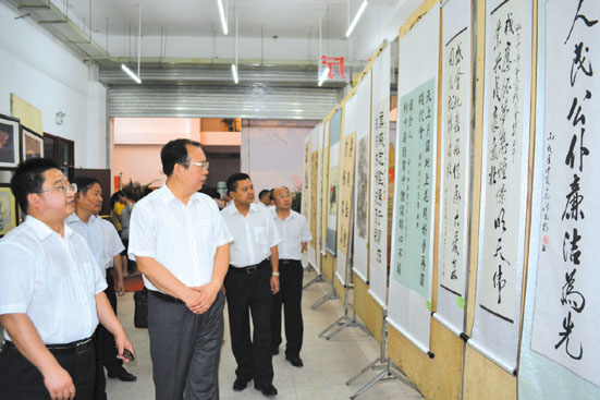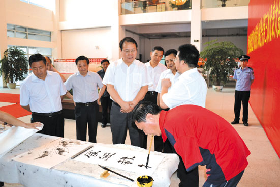 市委副书记周喜安观看许佐兵书法表演