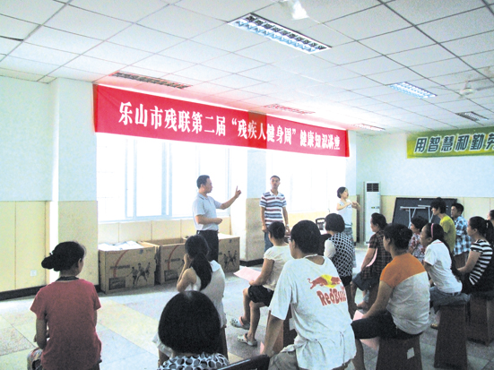 本报讯 日前,乐山市残联在市残疾人康复就业服务中心举办第二届“残疾人健身周”健康知识讲座,60余名肢体、听力、言语、智力残疾人代表参加了讲座。乐山市残联党组成员、副理事长陈德生到场指导并讲话。