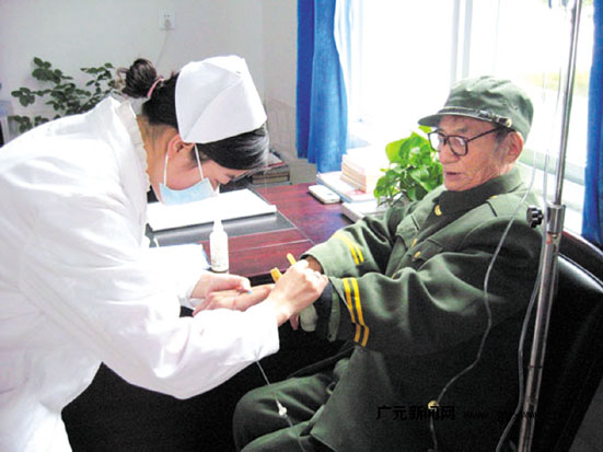 广元市光荣院医生正在医治生病的抗美援朝老战士