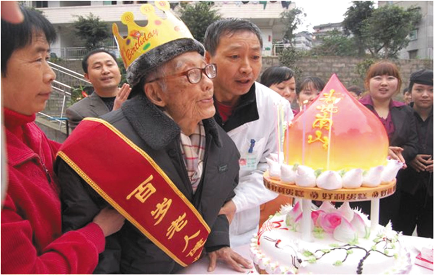 今年11月,泸州市福利院摆坝坝宴为百岁老人福寿