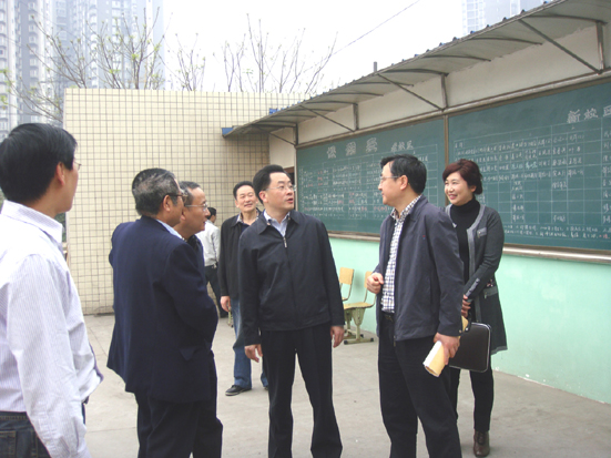 泸州市市委副书记、市长刘强(右三)察看市老年大学