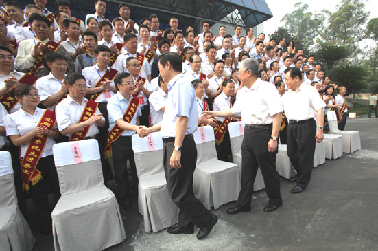 现任中共中央政治局委员、中央书记处书记、中央宣传部部长,时任中共四川省委书记、省人大常委会主任刘奇葆在第十六次全省民政会上与泸州市民政局局长刘洪亲切握手