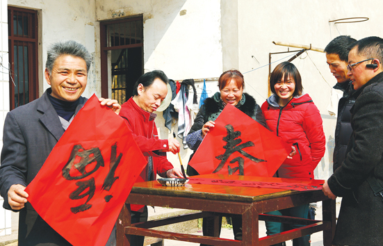 原来,在吴奇顺家忙碌的这批客人,是华蓥市文联组织摄影家协会、书法家协会为农村留守家庭送文化服务队。这支服务队自18日在华龙街道办事处柏木山村展开活动以来,已巡回到了华龙、永兴、明月等乡镇的8个村近100户留守家庭。服务队以让留守家庭感受快乐新年、文化春节为目的,不仅与留守老人、留守儿童和返乡农民工交心谈心,而且还为他们撰写春联、拍摄“全家福”。