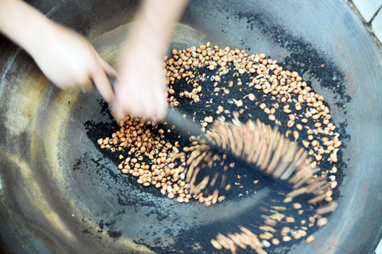 “不要过火,过火后花生的味道是苦的。”记者穿行在曲折的巷子内,还没有看到两河桃片的加工作坊,先听到作坊内传出的声音。