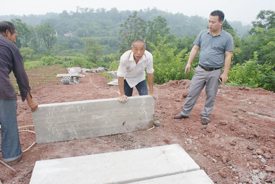 武胜县永胜乡乡长李晓斌(右一)指导村民硬化黄精地道路